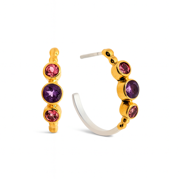Two-Tone Amethyst & Garnet Hoops