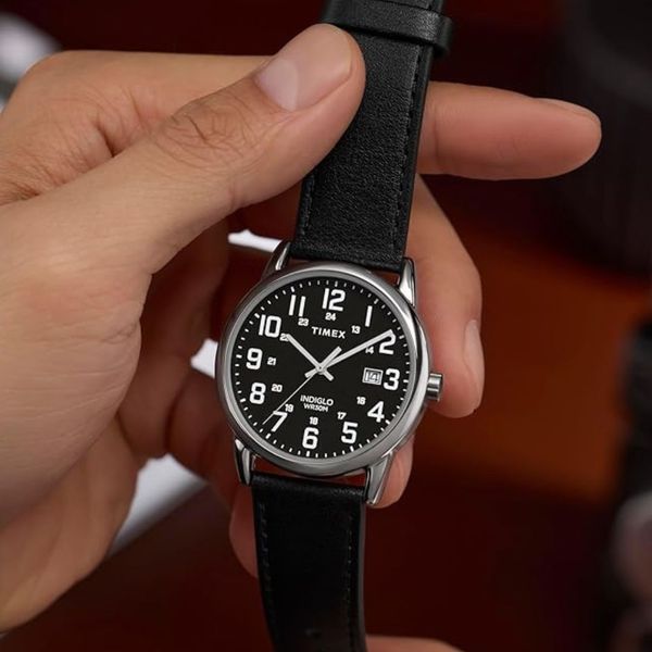 3. Black Leather Strap Easy Reader Watch